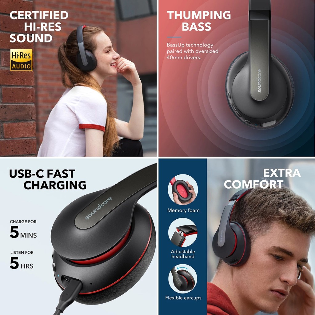 anker soundcore life q10 kablosuz bluetooth 5 0 kulaklik 60 saate varan calma suresi siyah kirmizi a3032