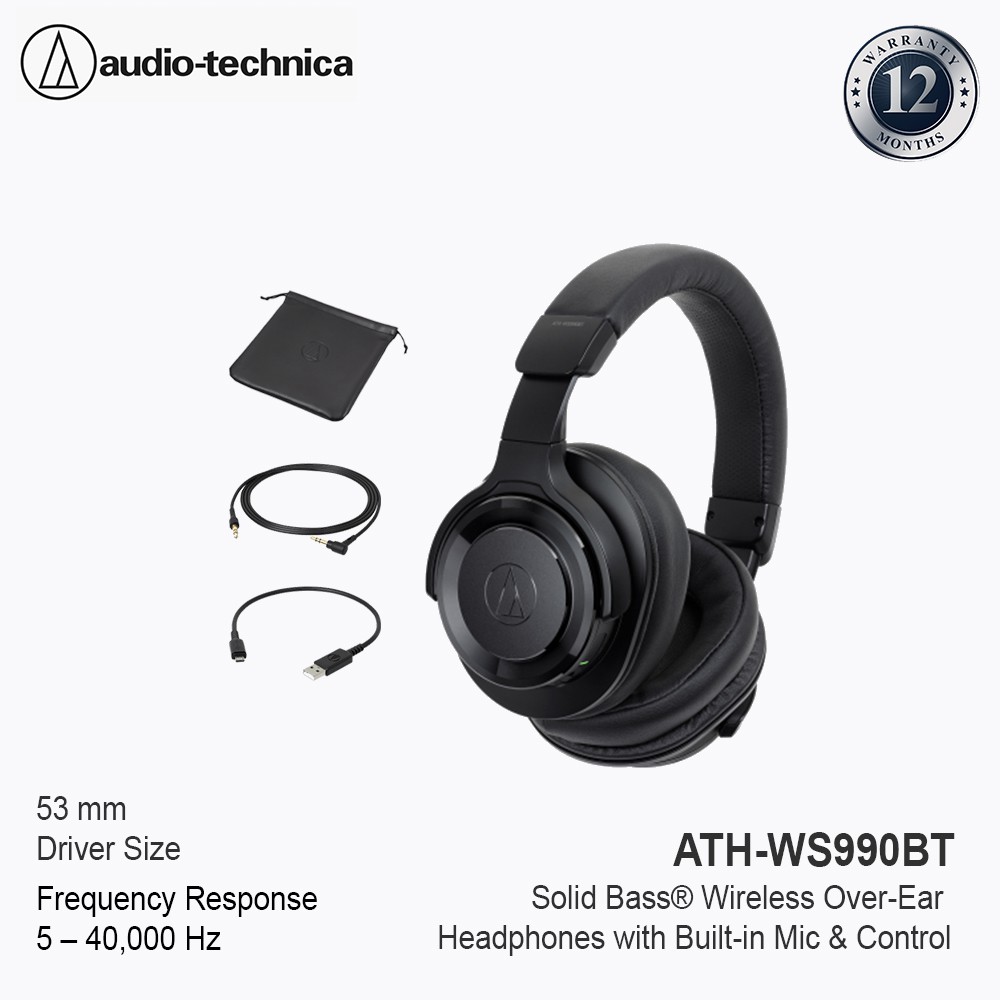 audio technica ath ws990bt solid bass with active noice canceling wireless headset headphone