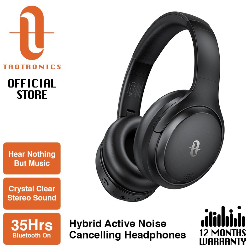 taotronics tt bh090 hybrid active noise cancelling bluetooth headphones over ear with 35h playtime wireless headphones soft protein earpads built in