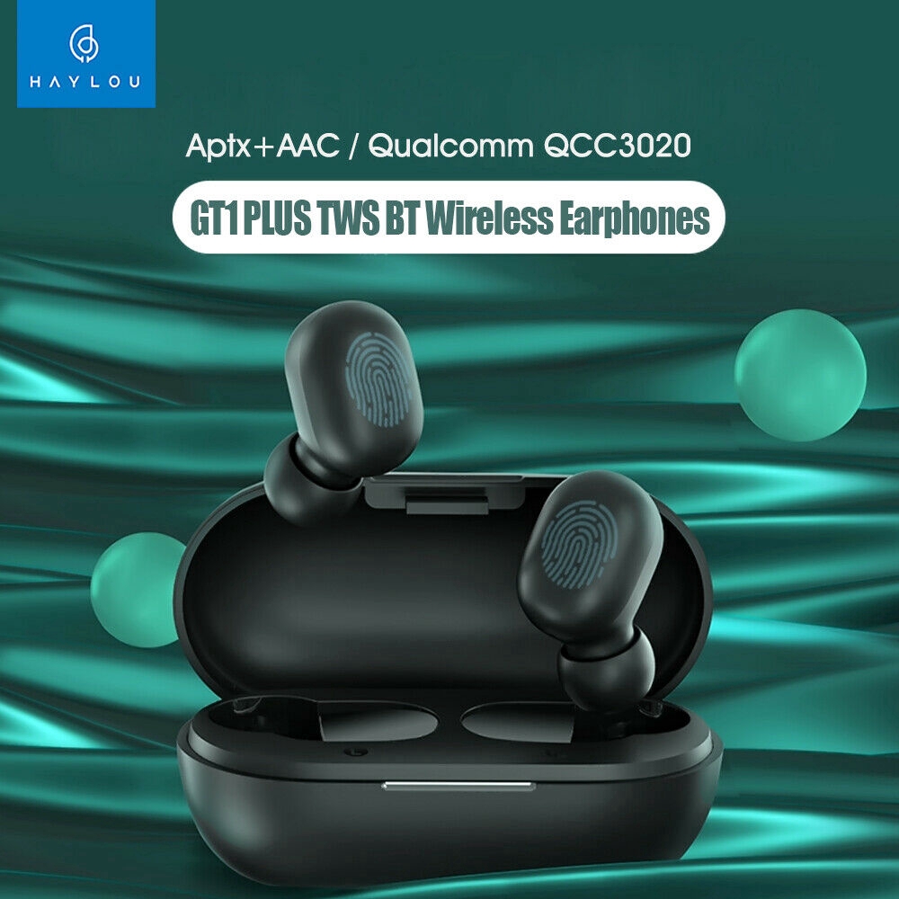 haylou earphone tws bluetooth 5 0 aptx fingerprint touch with charging base gt1 plus black jakartanotebook com
