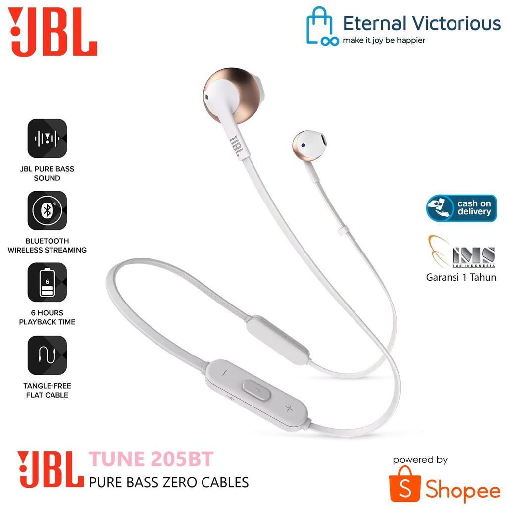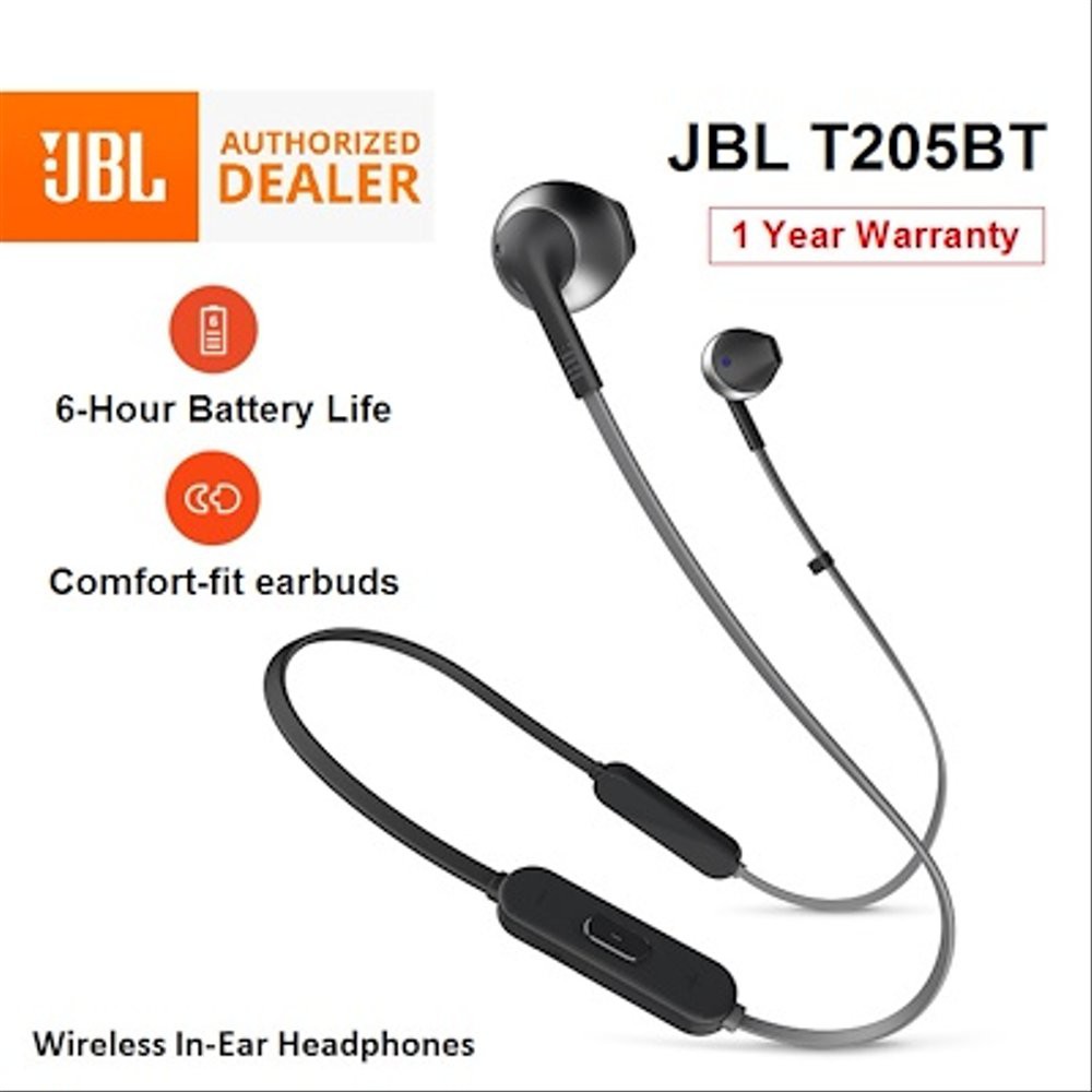 jbl t205bt inear bluetooth with microphones t205 bt original garansi resmi