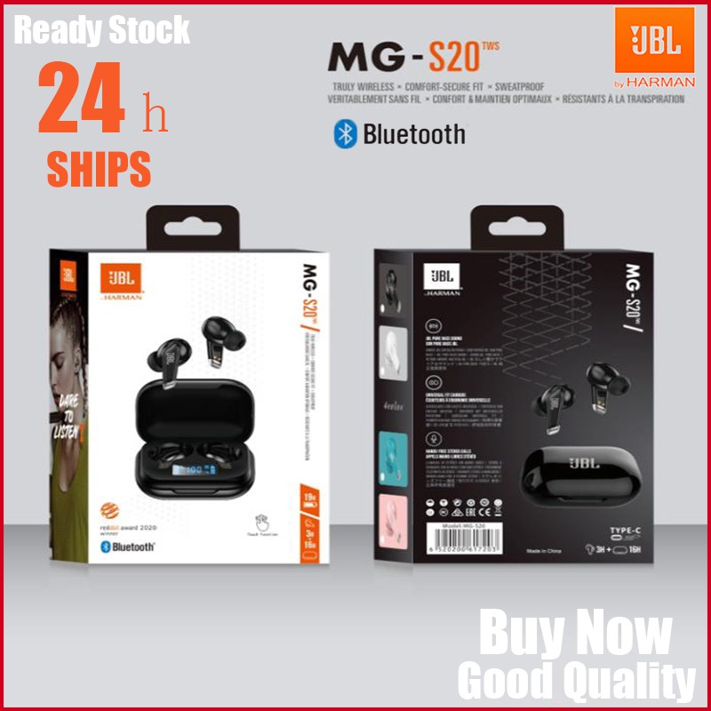 ready stock mg s20 jbl bluetooth earphone headset wireless 5 0 tws headset dual earbuds bass sound for smart phone