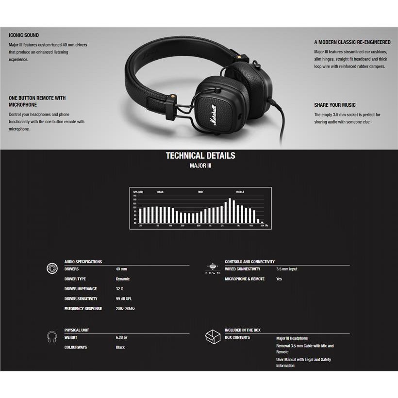 marshall major iii wired headphone