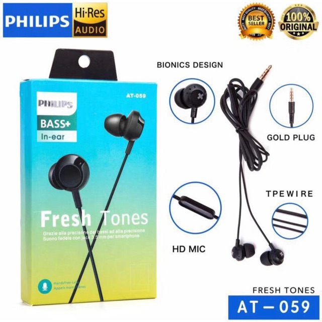 premium handsfree earphone philips at 036 super bass dan treble yang jernih