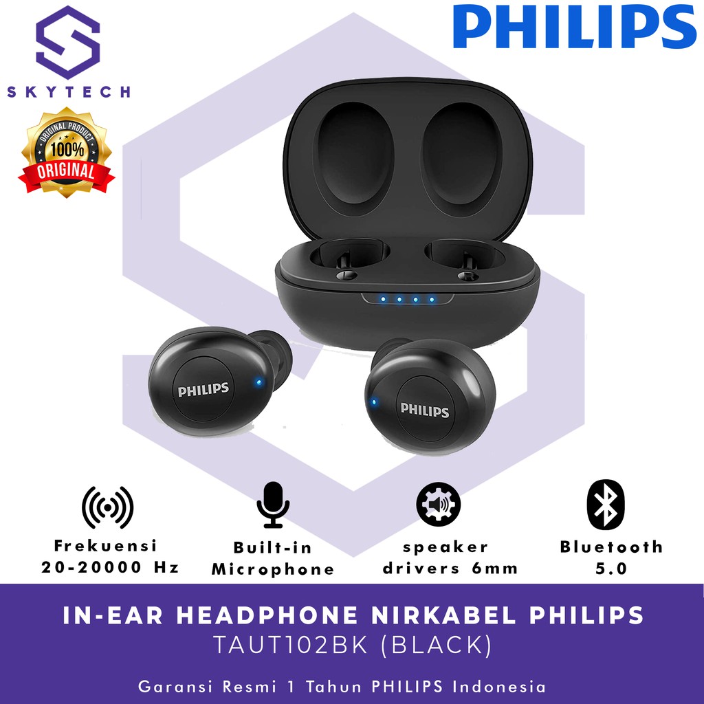 tws earphone wireless philips taut 102 black original garansi resmi