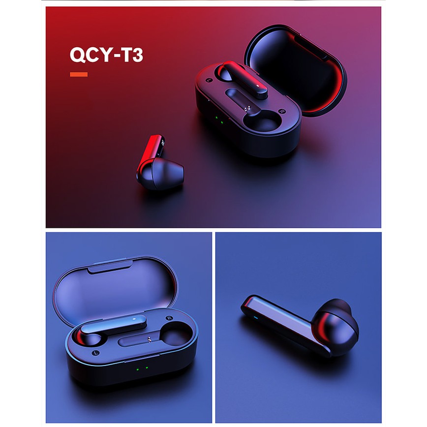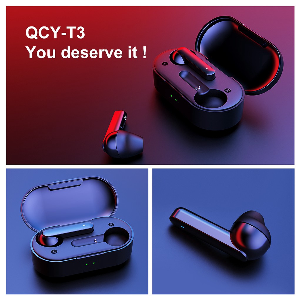 qcy t3 earphone tws nirkabel stereo 3d earbud bluetooth v5 0 kontrol sentuh peredam kebisingan ipx5 tahan air untuk semua ponsel
