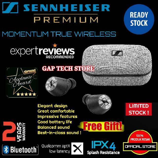 jual sennheiser momentum true wireless premium bluetooth in ear headphones jakarta pusat gap tech official tokopedia
