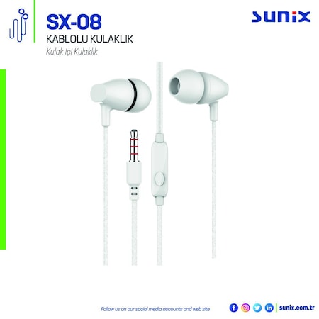 sunix sx 102 kablolu kulaklik beyaz