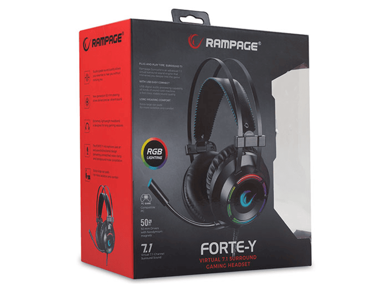 rampage rampage rm 19 forte y rgb usb 7 1 surround led isikli mikrofonlu oyuncu kulak ustu kulakligi siyah